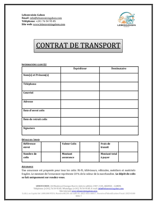 Lebonvoisin Gabon simplifie vos expéditions grâce à un service rapide, sécurisé et entièrement traçable — par voie aérienne ou maritime.